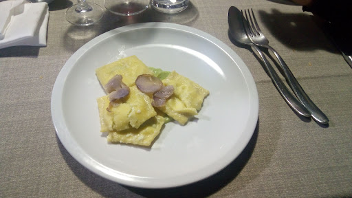 Read moreStrana esperienza! Ho pranzato qui con dei colleghi, suggerito da qualcuno che conosceva il locale: "Si mangia bene...". Si mangia poco!! Veramente poco. Per la prima volta ho visto le monete di parmigiana, sottili e di piccolo diametro. Ho visto la cameriera portarne quattro, e già pensavo che fossero poco, poi ho capito che ce ne era una a testa... poi il prosciutto, una fetta a testa... poi le frittelle (piccole anche loro)... una a testa. Attendevo con ansia i due primi. Arriva il primo piatto, con 5 maccheroni (di numero, proprio 5, né uno di più ne uno di meno), poi il secondo primo (in foto), ancora 5 maccheroni, stavolta un po'più grandi e ripieni, ma sempre 5... Più il secondo... piccolo !!!! Poi il dolce (strudel di mele) sottile come un dito, così sottile che io mi sono chiesto come hanno fatto a tagliarlo senza rompere la fetta. Frutta pochissima. Vino, almeno quello , buono e in quantità. Le pietanze erano buone, ma la quantità inadeguata. Un primo con 5 maccheroni non è un primo, tutto razionato come in guerra. Poco per una Taverna... Con un rapporto quantità-prezzo così basso, la qualità e la comodità della sistemazione dovrebbero forse essere...