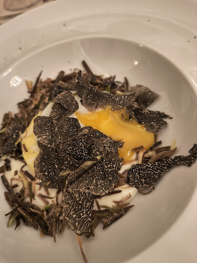 Read moreUn locale retrò che ha conservato la boiserie e i mobili di un tempo, in cui gustare una cucina di stampo piemontese con qualche contaminazione/rivisitazione. L'antipasto che ho preso era un mix di consistenze e profumi ben riuscito: salsa di formaggio alla base cremosa, tortino di porri ben sodo, uovo CBT con albume parzialmente cotto e tuorlo liquido, porri a listarelle fritti croccantini, scaglie di tartufo sottili e profumate. I tajarin erano fatti a regola d'arte, con un condimento molto ricco e saporito ai funghi porcini (bei pezzettoni!). Ad accompagnare, bollicine Altalanga. Non ho preso il dolce, ma ho chiuso il pasto con un bicchiere di barolo chinato. Con il caffè è arrivato un gradito assaggio di torta paradiso. Il servizio è attento ma non invadente, con il cambio delle posate ad ogni portata e il cameriere che chiede se il piatto è stato gradito. Forse eviterei la richiesta di recensire il locale al momento del caffè e magari lascerei il QR code a disposizione sul tavolo: chi come me recensisce i luoghi che visita lo fa comunque, a qualcuno potrebbe risultare sgradito a fine di un pasto. Ci tornerei per assaggiare i piatti classici piemontesi come il vitello tonnato o i plin, accompagnati da...
