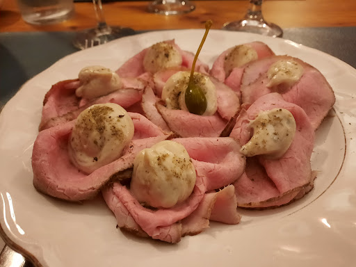 Read morePotrei riassumere la recensione con una parola: wow! 🤠Ristorante nel centro di Fossano, con la bella stagione è piacevolissimo sedersi all'aperto, sotto il portico o nella piazzetta. Ad inizio pasto viene offerto un antipastino con un calice di chardonnay locale ottimo. Il ristorante propone menù di carne o pesce ma in Piemonte vale sicuramente la pena provare la rinomata carne. Il menu degustazione di carne prevedeva una battuta di carne divina, un vitello tonnato tenerissimo con salsa molto delicata ed una tagliata davvero saporita. Come carta dei vini c'è molta scelta, abbiamo provato un ottimo bianco fermo della zona. Ultima chicca, i dolci sono squisiti e il caffè viene accompagnato da zuccherini imbevuti di alcool aromatizzato al pepe rosa, limone, salvia e anice. Considerando che il menù scelto prevedeva solo carne - peraltro buonissima - e la qualità di tutto l'insieme, trovo che quanto pagato dia un ottimo rapporto...