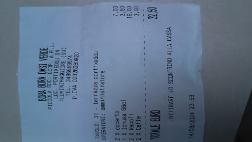 . Location meravigliosa sul mare di Portisceddu, recensioni stupefacenti (ma siete seri????) Avete visto i prezzi?? Avete notato il servizio. Le recensioni devono prescindere dal piacere della vacanza. Servono ad aiutare le persone a fare le scelte giuste. Vado alla mia esperienza da sarda e viaggiatrice. È vero che era la serata del 14 agosto, è vero che non avevo prenotato ma. Ivan ( presumo l'attuale gestore, che riconosco perché già visto in altri contesti culinari) di cui mi verrebbe la citazione dell'aggettivo del più conosciuto omonimo storico, nonostante avesse poco personale e poco cibo, accoglieva tutti. Diceva a chiunque arrivasse di aspettare che avrebbe trovato il modo di farci accomodare. Il locale era già strapieno soprattutto di persone che avevano prenotato la famigerata cena di ferragosto. Io e mio marito ci siamo accodati alla fila di chi attendeva senza prenotazione. Meno male che volevamo mangiare solo la pizza perché, dopo un'attesa di quasi un'ora, la cucina chiudeva i battenti. Solo pizzeria. Alcuni della fila in attese sono andati via, noi imperterriti abbiamo atteso ancora per le due pizze che avevamo intenzione di mangiare. Comunque, nel frattempo abbiamo visto di tutto: camerieri imbarazzati perché erano in grande difficoltà; clienti che, nonostante la prenotazione e nonostante fossero seduti a tavola da ore, si son visti portare piatti che, dalle loro espressioni, erano completamente "sbagliati". Una intera tavolata che è andata via furiosa e che non voleva nemmeno pagare, giustamente, per la serata rovinosa e rovinata. Insomma un disastro. Ma Ivan era imperterrito a continuare a... sbagliare. Arriviamo a noi. Ci danno il tavolo e dopo un'altra mezz'ora arrivano due pizze: praticamente un'attesa di un'ora e mezza per avere le pizze: quasi un pane carasau condito da quanto erano stese e croccanti. Probabilmente stava finendo pure la pasta per le "" pizze"". Vabbè, peggio per noi che ci siamo fermati e fatti abbindolare da Ivan. L'unico dispiacere è per i turisti che, per l'ennesima volta, vengono in Sardegna ( e spendono già per questo) e si ritrovano servizi del genere. Conoscevamo i vecchi gestori ( due fratelli) del bora bora e ci siamo stati tante volte. Non era male. Morale della favola arriva il conto: vi faccio vedere il conto... A voi le deduzioni. Ivan, ti abbiamo conosciuto quando lavoravi da Maria, all'Ancora; eri un bravo cameriere. Fossi in te tornerei a fare ciò che sai...