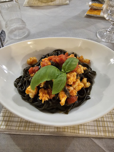 Uns war nicht bewusst, dass normalerweise zwei Hauptgänge existieren (ein Nudelgericht und ein reines Fisch/Fleischgericht). Diese haben wir auf zwei Personen aufgeteilt (weil, wer soll das alles essen - und bezahlen?). Das Nudelgericht (schwarze Nudeln mit Scampies) war sehr schmackhaft und ausgefallen, jedoch sehr klein. Der Fisch (Seebrasse) war hervorragend. Man sollte jedoch nicht vergessen eine Beilage (Contorno) zu bestellen, da einen sonst nur ein Fisch vom Teller anlächelt. Die Auswahl an Beilagen ist sehr übersichtlich. Es gibt nur Pommes Frites, gemischten Salat oder Tomaten. Da geht sicher mehr. Würde man Gang eins und zwei miteinander kombinieren, hätte man ein in Mitteleuropa übliches Gericht. Zudem war der Salat ohne alles. Hier kann von der Küche schon verlangt werden, dass ein Salat mit einem Dressing oder einer Vinaigrette angerichtet wird, und die Leistung nicht nur daraus besteht Gemüse klein zu schneiden. Das kann jeder. Dafür war das Dessert der Oberhammer. Vanilleeis mit Espresso. Süß und aromatisch. Einfach Klasse.
