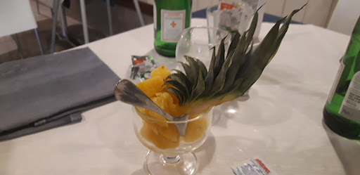 Stasera la carta dei dolci proponeva una sfilza di roba piena di conservanti. Ho preso un tiramisù che praticamente era un savoiardo enorme che strabordava di caffè con una sorta di gelato al fiordilatte sopra e un retrogusto di alcol. La torta al cioccolato compatta e che si impastava in bocca e sapeva di plastica. Insomma scelta orrenda quella di affidare il menù dei dolci ad una casa produttrice esterna, tale BINDI, scusate ma se proprio non volete farli voi almeno scegliete qualcuno che sappia valorizzare i propri prodotti. È un peccato perché il dolce, che dovrebbe completare una buona cena ,invece ,...