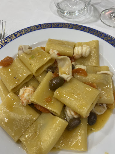 Il locale è molto carino e trasmette affidabilità e calore ma sarebbe carino anche dargli una “svecchiata” su alcune cose, come consiglio, ma molto avvolgente e piacevole. Abbiamo preso un antipasto da 9 assaggi composto da un piatto di freddi (alici marinate, salmone marinato, insalata di mare, un filettino di pesce con peperone crusco lucano eccellente) poi come caldo delle cozze ripiene, uno scampo, un cannolicchio ripieno ed il tonno alla siciliana. Tutto molto gustoso, piacevole e mi preme sottolineare la grande qualità e freschezza del pesce. Poi abbiamo ordinato le cozze alla diabolik cioè delle cose affogate nel pomodoro con peperoncino, molto gustose ma le cozze erano un po’ secche ed il pomodoro come se avesse cucinato poco… sarebbe stato tutto più buono se le cozze fossero state più carnose e forse il sugo più saporito e cotto. Il pane che ci è stato offerto, di grande qualità e di diversa tipologia quindi anche piacevole nel degustare i diversi piatti. Come primi abbiamo preso: gli gnocchi con gamberi e vongole, eccezionali, stessa cosa per i paccheri gamberi, scampi, olive ecc anch’essi perfetti sia nel sapore che nella cottura e poi i rigatoni con scampi e gamberi e anche qui il problema è sempre stato il sugo, come se fosse poco cotto. Per quanto riguarda il polipo sicuramente buonissimo ma ci siamo rimasti male perché almeno due tentacoli vanno inseriti… un tentacolo è davvero esiguo. Abbiamo apprezzato anche tanto le verdure grigliate al momento, il servizio davvero cortese e preciso, insomma un ottimo ristorante con qualcosina da aggiustare ma da tornare...