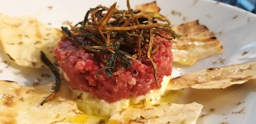 Read moreSimpatia e gusto! Le strade della capitale nascondono meraviglie dietro ogni angolo, bellezze artistiche millenarie e preziosi profumi. Colpisce la simpatia del personale, che invitatoci ad accomodare, ci illustra e consiglia piatti pregiati. Un'interno a tema, colori coordinati, mobilio puro e classico, scaffali con pregiati vini mostrano da subito un ristorante semplice ma che ha "doti" nascoste. Amatriciana, cacio e pepe, carbonara degni di gusto e semplicità di impiattamento, e un merito peculiare va alla carta dei vini . Spesa che eguaglia la qualità culinaria servita, e merita una descrizione sola una cosa sorprendente che non si vede tutti i giorni: mentre ci si avvia, in un locale adiacente alla sala (appartenente sempre al ristorante), 7 donne che impastano a mano! Pochissimi lati negativi, e un titolare affabile molto somigliante al cantante Paradis T., ne fanno di questo ristorante una perla cui merita...