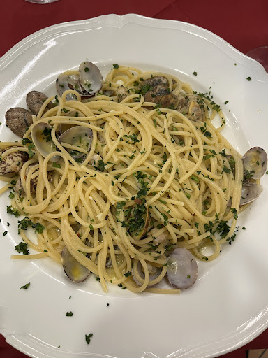 Especially I want to mention the dishes that differ from the central restaurants of Rome in their delicious, portions and ingredients. The portions are really big))) The dishes consist of unusual combinations of ingredients. I took pasta with clams and white tartufo sauce, it was delicious, I recommend it to everyone. Also large portions of desserts, even serving is different and unique. Wines are excellent! Staff always ready to help you to choose perfect wine and dish.