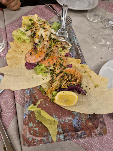 Cena in 10 ed abbiamo preso il menù fisso di pesce a 32 euro a persona minimo 4 persone. Antipasto abbondante con tante cose sfiziose, ad iniziare dall'alzatina con carpacci vari, ostriche, gamberoni, insalata di polpo e patate ed insalata di mare in ciotoline mono porzione, bruschette varie, quindi portate di seppie e piselli in contenitori di coccio, soute di cozze e, sempre in ciotole di coccio, mazzancolle e broccoli, vedente tanta roba accompagnata anche da focaccia e pane carasau. Poi 2 primi, la prima portata con sugo di cozza, vongole e calamari, veramente spettacolari, mentre il secondo primo, carbonara di mare, non mi ha convinto, almeno non rientrava nei miei gusti, per me la carbonara è una sola, mischiare con il pesce per me non ha senso, ma questa è una opinione personale. Quindi 2 portate per i secondi, calamaro grigliato e gamberoni, sempre grigliati, ottimi entrambi ma porzioni troppo ridotte per 4 persone, non sufficienti come quantità, così come la frittura, sempre buonissima ma molto poca da dividere in 4. Alla fine i 32 euro il menù li vale tutti, ma il conto sale parecchio se non si presta attenzione ad ordinare il vino, noi abbiamo lasciato fare al servizio ed il conto è salito a 46 euro a persona, acqua compresa che non è in bottiglie sigillate, con 5 bottiglie di vino ed un prosecco ad inizio pasto. Non ho preso dolci o amaro e caffè, ma penso che saremo arrivati a 55 euro a persona per il pasto completo. Volendo, comunque, ci sono anche altri menù, anche da prendere singolarmente senza dover dividere le portate, cosa non sempre piacevole da fare, che sono anche più economici. In definita ottima cena, sicuramente ci tornerò per provare il menù di carne. Naturalmente hanno anche il menù alla carta che prevede anche la prenotazione tramite "thefork" quindi con prezzi scontati. Aggiornamento, come anticipato sono tornato per il menù di carne, ho preso quello da 24 euro che prevede un antipasto di affettati dove troviamo una bruschetta al pomodoro, una fetta di melanzana gratinata ed affettato vario tra prosciutto crudo, lonza, mortadella, salame dolce e piccante ed una bella fetta di porchetta, il tutto accompagnato da un'altra portata con bocconcino di bufala, stracciatella, questa spettacolare e ricottina con marmellata, il tutto da mangiare con una focaccia, veramente soddisfacente. Per primo ho preso tonnarelli cozze e pecorino, ottimi ed abbondanti, per secondo 6 arrostiti di ovino con contorno di insalata, assolutamente gustosi, con una bella birra. Mia moglie ha preso un menù pesce da 30 euro, con un bell'antipasto misto, soute di cozze e 2 ostriche, per il primo ha chiesto il risotto di mare non inserito nel menù da 30 euro, ma non ci sono stati problemi, proprietario veramente disponibile e cortese, per secondo frittura di calamari, bella chiara e croccante di frittura con una bottiglia di acqua, questa volta sigillata. In tutto, senza dolci o amari e caffè, abbiamo speso 65 euro, devo dire che la cena li vale tutti, ci si alza pienamente soddisfatti, come quantità e qualità. Il locale era pieno, ma l'attesa non è così lunga, giusto ul tempo tra una portata e l'altra. Modifico la recensione e la porto a 5 stelle, ci tornerò...