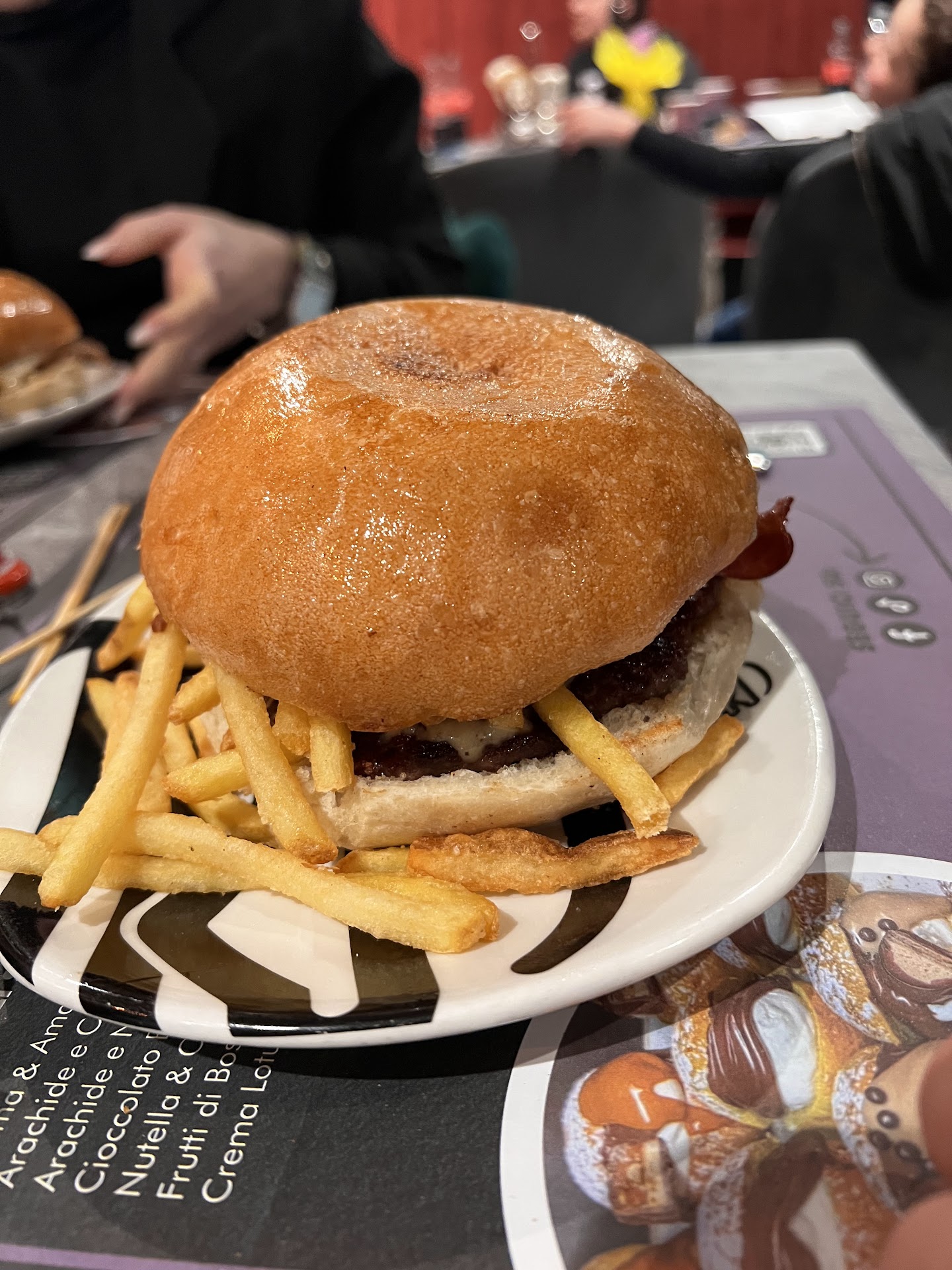 Come un po’ tutti quelli che hanno scoperto Black burger su instagram, siamo andati un sabato sera carichi di aspettative. Sapevamo delle file immense per entrare e che il fine settimana non accettano prenotazioni, quindi siamo arrivati sul posto alle 19:30 ma ahimè era già troppo tardi per la loro affluenza! Abbiamo aspettato circa un’ora per poterci accomodare e devo dire che la ragazza che gestisce la lista d’attesa all’esterno del locale è davvero sgarbata. A domande di delucidazioni sui possibili tempi d’attesa fatte da noi e da altri, rispondeva stizzita “che domande mi fate, non sono all’interno del locale, che ne so io!” quando poi se fai questo lavoro e hai fatto accomodare un tot di tavoli, un orario indicativo di quando quei tavoli se ne andranno puoi comunque preventivarlo, come fanno praticamente ovunque. Molti gruppi più grandi, li ha letteralmente cacciati via davanti a noi, penso con un parametro di giudizio prettamente personale per cui “siete in troppi, non mi assillate a chiedere sempre quando ci vuole per entrare, per me potete anche andarvene e vi cancello.” Parecchie persone fuori si lamentavano per i suoi modi tanto che quando ti accomodi dentro hai ancora l’amaro in bocca per le sue risposte. Capisco il dover affrontare tanta gente affamata e insistete ma bisogna anche distunguere chi ti fa una domanda gentile da chi no. Fortunatamente il servizio all’interno è molto più disponibile e simpatico, e mi sento quindi di fargli una menzione speciale.