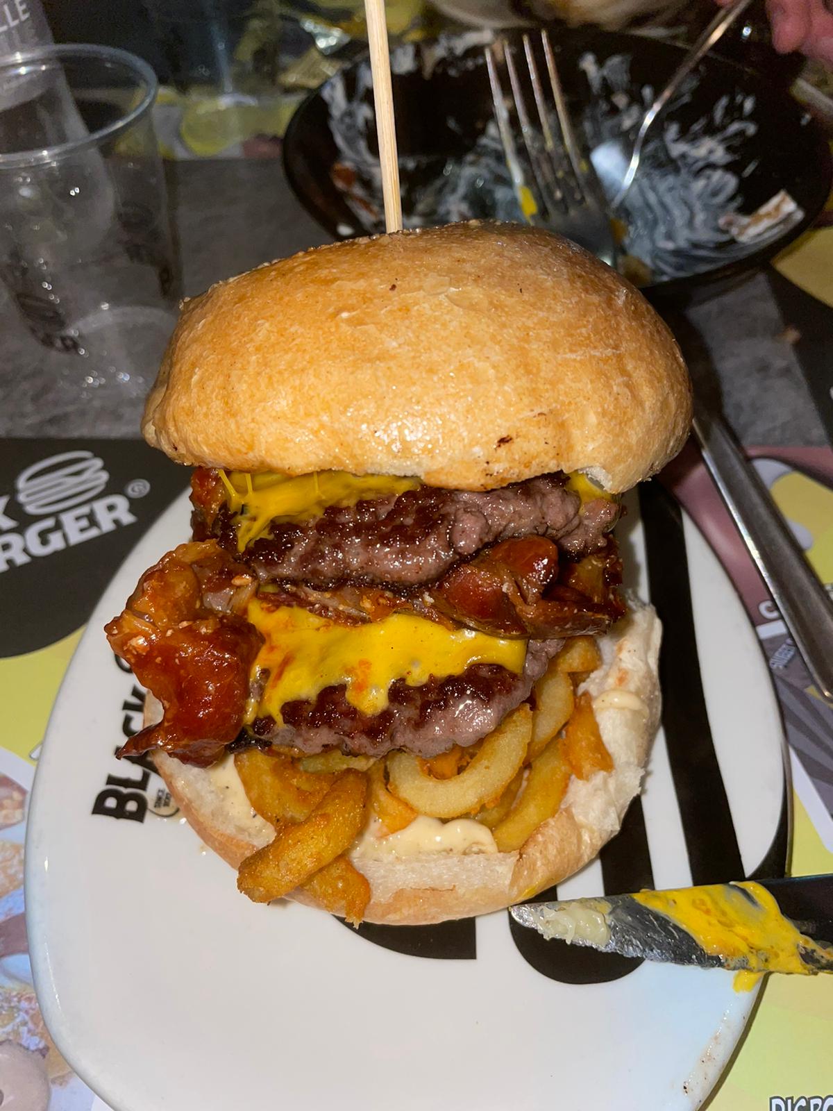 Passando al menù, i fritti da scegliere come antipasto sono buoni, alcuni un po’ pieni di olio ma non disgustano comunque. I panini, nonostante la pubblicità e le bellissime foto, sono assolutamente nella media. Gli ingredienti sono buoni, saporiti, ma si trovano panini simili anche in altre decine di posti. Il problema di Black burger è proprio che crea tante aspettative, c’è tantissima fila da fare, e quindi una volta che assaggi il loro menu poi rimani un po’ deluso anche se è tutto abbastanza buono.