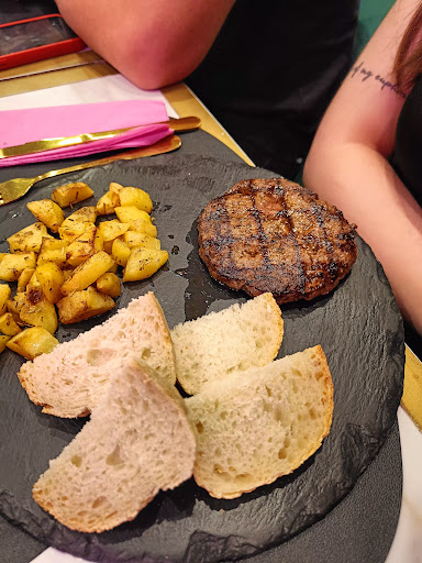 Diciamo che dalle pubblicità sui social ci aspettavamo molto di più. Personale gentile senza dubbio, locale molto molto piccolo ma accogliente, sembrava anche pulito ma il cibo non era chissà cosa a mio parere. Menù molto limitato, in quasi tutti i panini era compreso come ingrediente la parmigiana (sia bianca che rossa) e mi sembra un po' assurdo. Le patatine con le polpettine erano insipide, sembrava davvero non ci fosse nemmeno un granello di sale. Hamburger troppo cotto, in alcuni panini il cheddar era così tanto che è risultato immangiabile ed infatti è stato lasciato nel piatto. In altri panini invece non si riusciva nemmeno a sentire il sapore della carne perché era insipida. Anche nell'hamburger al piatto ordinato è stata notata questa cosa ed era anche troppo cotto all'esterno. Prezzi un po' alti, soprattutto per alcuni panini che arrivano a 12 o 15 euro e per il sapore che hanno, non è che li valgono quei soldi. Sinceramente niente di che, purtroppo ci aspettavamo molto ma molto di più e non torneremo di certo. Ps: non capisco perché la signora con i capelli scuri alla cassa e la ragazza che ha servito al tavolo continuassero a fissarci insistentemente.. ad una certa è diventato...
