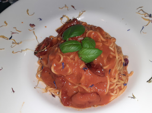 La cena del gruppo era stata concordata precedentemente, purtroppo non c'è molto spazio nel locale. Il nostro tavolo, per un iniziale undici persone era stretto e poco lungo, sedersi poi non è molto comodo visto che il lato del muro è a divanetto e per uscire lo si fa con difficoltà. Per fortuna sono mancati due altrimenti non saprei come ci avrebbero sistemati. Fino all' antipasto si è andati più o meno bene: le polpettine erano buone, gli affettati con fette di formaggio ok, i legumi cotti pure, ma i carciofi erano semplicemente cotti ma non conditi . Passiamo al resto. Si era concordato o un primo o un secondo con contorno ed infine il dessert. Ad un tratto, i due camerieri cominciano a portare pasta per tutti, molti erano assenti, io ho potuto dire di no. Non c'è stata data una scelta precedente, nessun ordine con il taccuino o tablet. A me come pure ad altri che non avrebbero voluto la pasta, è stata offerta la tagliata di manzo, a me con patate al forno, ad altri chi con verdura, chi con zucchine alla piastra. Comunque sia la carne non mi è piaciuta. Per dessert un mini bignè cosparso di cacao e con un angolo interno di crema al caffè. L'unica altra cosa che mi è piaciuta è l'intrattenimento musicale, però non è posto adatto...
