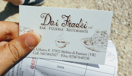 Pizzeria Dia Fradai, gelegen nabij het prachtige Parco delle Cascate di Molina, is een culinaire parel die zeker de moeite waard is om te bezoeken. Het restaurant combineert een authentieke Italiaanse sfeer met een ongedwongen en gastvrije ambiance, wat zorgt voor een geweldige eetervaring.