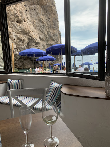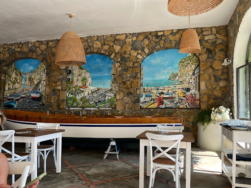 Read moreCategory: Seaside bar/restaurant. After walking down the seemingly endless steps from our villa to the beach, we were ready for some day drinking. This restaurant has a great outdoor patio overlooking the small beach but we only wanted drinks so we sat inside. A wedding was held there the night before, so the windowsills were festooned with white roses (don’t expect fresh roses all the time). It was a hot day, so the cooling breeze wafting through the wide open restaurant interior, and its shade, were as welcome as our cocktails were refreshing. The interior is dominated by a long, decorative fishing boat beneath stone arches with a mural of the sea view. With white, wood-topped tables and blue-and-white tile, I’d say the place has a great Mediterranean feel if that didn’t seem redundant in view of its location. But it does. If we had worn our swimming togs we could have had a dip and sip, enjoying both the sea and drinks 🍷. Looks like a good place for dinner too. YouTube’s...