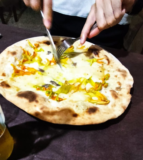 Pizzeria con sala interna, purtroppo sembrava che avessero il climatizzatore spento e il caldo era notevole. Abbiamo dovuto attendere oltre mezz'ora per le pizze nonostante il locale fosse mezzo vuoto, e pazienza, ma le pizze erano davvero deludenti. Nella mia impasto eccessivamente stirato, sembrava pane carasau da quanto era croccante, condimento scarsissimo con acciughe fatte a pezzettini minuscoli e qualche fiore di zucca buttato a caso. A fine pasto ci viene chiesto come era andata e facciamo presente che francamente non eravamo rimasti soddisfatti ma vabbè. Le cameriere almeno sono state molto gentili e disponibili. La ciliegina sulla torta è arrivata al momento di pagare. Arriva direttamente il pizzaiolo/titolare al quale era stato fatto presente il nostro giudizio e ci dice che a lui le acciughe arrivano già così sminuzzate e quello è il suo modo di fare le pizze. No problem, stavolta è andata così. Paghiamo il conto e solo dopo ci viene battuto lo scontrino, dove notiamo un errore, ovvero il prezzo aumentato delle birre rispetto al menù. Faccio presente l'errore e mi viene risposto sempre dal pizzaiolo che devono aggiornare il menù e si sono dimenticati. Insisto sul fatto che non è mia responsabilità e solo dopo mi viene resa la differenza di prezzo, senza nemmeno una scusa per il disguido. Mi dispiace ma non è modo corretto di comportarsi con i clienti, al di là del tipo di pizza che può piacere ma anche non piacere. Se non accettate feedback allora è inutile che chiediate come è andata...