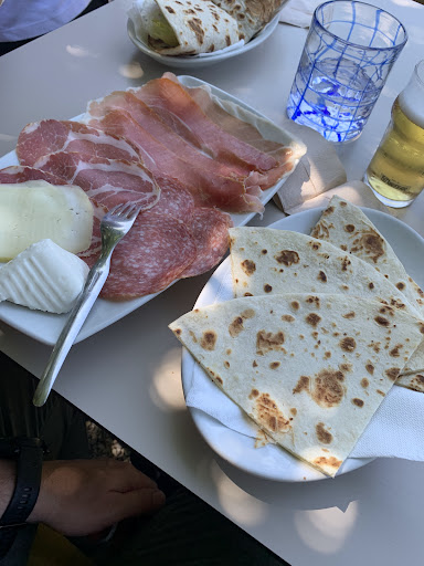 Siamo persone del posto e riconosciamo bene quando una piadina è veramente buona. Siamo appena stati a mangiare e se la mangiavamo a casa era meglio. Arrivano le piadine, la mia era gratè (pomodori e melanzane a mio avviso scarso,perché fare anche dei peperoni e cipolla non ci voleva tanto, ma vabbè questo è il meno) e salsiccia. Per puro caso apro la mia piada e mi trovo una salsiccia tagliuzzata e anche il gratè. Bruttissima da vedere, sembravano le rimanenza delle altre piadine. Decido di contare i pezzi, 7 in totale e la ricompongo, insomma neanche 1 salsiccia intera. DELUSIONE. Chiamiamo il cameriere che incolpa la cucina e si giustifica che non l'ha farcita lui. Certo se fai il cameriere non puoi farcire le piade!! Mi prende indietro la piada e me la porta in cucina, e da 7 pezzi diventano 11 pezzi di salsiccia. Al primo morso capisco che la salsiccia è secca, asciutta e sicuramente congelata perché il sapore faceva schifo. Il conto eccessivo!! Rapporto qualità/prezzo pessimo. Se pago 9 euro una piada, questa deve essere buona, non secca, con prodotti di qualità e una buona salsiccia fresca. Anche il Servizio ci è risultato deludente! Siamo del posto quindi la pubblicità che faremo a voce, col passaparola sarà assolutamente NEGATIVA. Ps. Il panorama è bello è vero, ma quel panorama lo si vede anche più in su del chiosco o più in giù e cmq avere un bel panorama non basta, è il mangiare di qualità e bene che fa la...