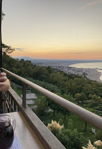 Read moreFacciamo finta di essere a "Quattro Ristoranti", e diamo un voto per location, menù, servizio e conto... Location 10:la più bella vista della Riviera Romagnola, se il cielo è terso si riesce a vedere la costa fino al grattacielo di Cesenatico, e cenare con il Sole al tramonto sul mare non ha prezzo. Menù 8: Premesso che io odio tutto ciò che ha a che fare con il mare in quanto a cibo, il menù è sufficientemente vario da non scontentare nessuno. Si mangia bene, e la vocazione turistica del menù in questo caso è un bonus, non certo un male. Servizio 8: Veloce, cortese e attento. Con il locale murato di gente non si sono dimenticati di noi, cosa che avviene, purtroppo, ormai troppo spesso in locali ben più piccoli e molto meno affollati. Conto 7.5: Di sicuro non è il locale più economico della Riviera, ma il rapporto con le altre voci di questa recensione rende più che giusto quello che abbiamo speso.