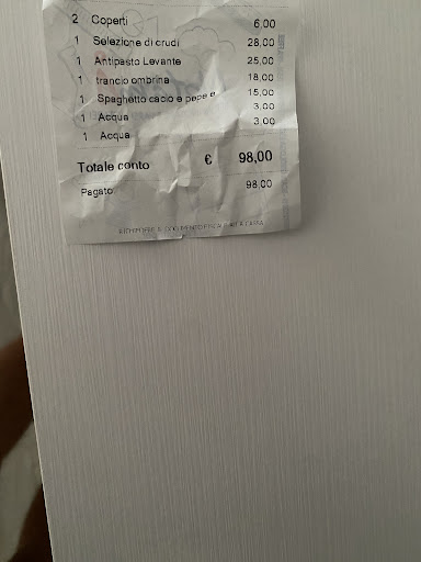 Read moreProvato il penultimo giorno prima della chiusura stagionale. Nonostante questo -visto che mi è capitato in passato di essere ospite di ristoranti che due o tre giorni prima delle ferie, posso fare un raffronto- nessuna lacuna è stata riscontrata. Non solo, sia l'antipasto di crudité che quello levante si sono esposti al massimo del livello, sorprendenti entrambi. Del levante tutte le selezioni erano eccellenti, ma le tagliatelline di seppia, giuro, mai sentite così buone. Lo gnocchetto buonissimo, ma la mia cacio e pepe con tartare di gambero e lime, dava mostra di sé, un equilibrio davvero raffinato. Non ricordo il vino scelto ma anche quello ottimo, al pari livello dei piatti serviti. Ho gradito immensamente che, prenotato poco prima di sederci, ci avessero riservato il tavolo -a mio avviso- migliore di tutti: discreto, in angolo. Ottimo cestino del pane e ambiente curato, caldo, proprio il mio stile ideale. Prezzi più che congrui, anche se appena letto il costo dell'antipasto levante, 22 euro, a colpo d'occhio mi era parso lievemente caro ma credete a me, per qualità, varietà, quantità, perfettamente commisurato. Da tornarci, indubbio, per provarlo magari in terrazza. Bravi...