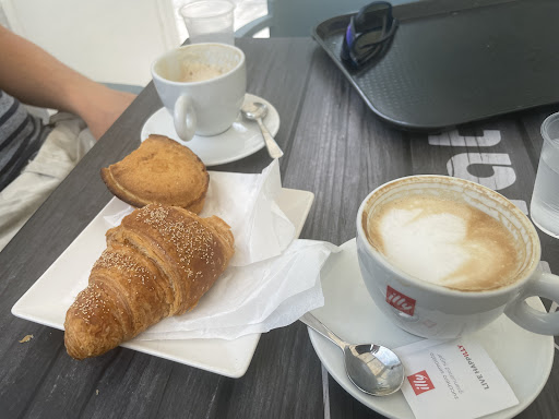 Read moreAmerican/German tourists here! This was our first stop in Italy for some coffee and light breakfast and we were not disappointed. I had a cappuccino (one of the best I've ever had) which I paired with an apricot croissant. Delicious and the perfect morning snack. Hubby also had a the cappuccino and loved it. He paired his with some cream filled puff thing. We actually don't remember what it was called but it tasted yummy. The staff were friendly and the place was clean. Lots of breeze so we were not overheated. Also this place was close to everything which was great. Would recommend. Here is photo. We kind of dove right in and forgot about this review so ignore the half...