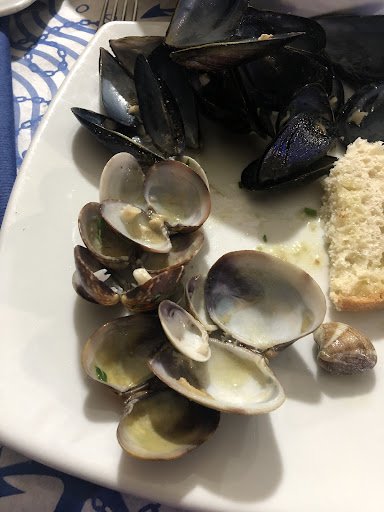 È stato uno dei primi ristoranti che abbiamo incontrato e poiché era tardi ci siamo fermati. In due abbiamo mangiato un antipasto di cozze e vongole dove le vongole erano inesistenti (la maggior parte erano chiuse) e la stessa cosa è capitata con lo spaghetto alle vongole, praticamente in bianco e tra l’altro con la pasta cruda (nemmeno al dente)! Questa cosa è stata fatto presente al cameriere che ha poi confermato nel momento in cui lo abbiamo detto alla proprietaria in cassa, che non si è nemmeno scusata. Si è limitata solo ad un “ma può capitare”, ed è vero si, ma può capitare in casa, non in un ristorante dove mi aspetto un determinato servizio. I paccheri con cozze (piatto del giorno) avevano la cottura giusta ma anche lì le cozze erano piccole e senza un bel colorito; nel complesso aveva un buon sapore a differenza dell’ antipasto che sapeva solo di aglio 🤷🏻♀️ I camerieri erano distratti, “urlavano” fra di loro per comunicarsi le cose e altre urla si sono sentite verso la cassa/entrata. Abbiamo chiesto l’acqua e non ci è stata portata. Amari e caffè serviti nei bicchierini di plastica. Sul prezzo nulla da dire, stiamo comunque mangiando pesce…anche se di gusti...