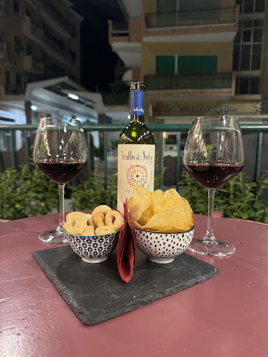 Read moreSiamo stati in questa enoteca incuriositi dal menu e dai vini. Avevo una prenotazione alle 21 per 2 persone e alle 21,20 ci hanno fatto accomodare,accomodare si fa per dire su 2 sgabelli alfi e scomodissimo,il tavolo aveva misure di 15 cm per 15 e i tavoli sulla nostra destra e sinistra distanziavano dal nostro 10 cm. Sembrava fosse il 31 di dicembre ..Il tutto accompagnato da una musica dal vivo a dir poco assordante se si calcola che tutto il locale è di 35mq pieno di gente che strilla e la musica che pompa... Il cameriere,presumo un certo Franco,molto gentile ma avrei preferito che riuscissi ad ascoltare gli ordini e fosse riuscito a consigliarci dei vini come si fa solitamente in un enoteca, con molta fatica gli abbiamo chiesto dei cibi ma alcuni non erano disponibili ( tipo la pinsa)ed altri non li abbiamo presi su suo consiglio perché non stavano bene tra loro... perciò ci siamo accontentati di un tagliere di formaggi e salumi sotto la media, delle zucchine molto deludenti accompagnate da acciughe del barattolo comprsto al supermercato. Abbiamo bevuto del prosecco Franciacorta ed ha deciso lui che tipo di Franciacorta.. eravamo in 2, siamo usciti da questa enoteca irreale,con un forte mal di testa io e un mal di stomaco la mia compagna e con 80 euro di meno nelle nostre tasche. Caro Franco: ti ringrazio della tua gentilezza e simpatia,ma forse è solo forse dovresti puntare un po di piu sulla qualità e attenzione al cliente che alla quantità! Se tornerò mai a Gaeta proverò...
