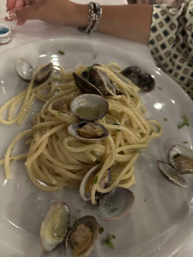 Ieri sera sono venuta a cena per la prima volta, con altre due persone in questo ristorante. Esperienza abbastanza deludente. Innanzitutto, il locale ha un parcheggio, provvisto però di pochi posti auto, ma non ne faccio una colpa alla gestione, anche perchè in zona si possono trovare abbastanza facilmente. Abbiamo apprezzato che ci hanno fatto accomodare nel patio più esterno, anche senza aver prenotato in precedenza, e ci hanno subito fornito i menù e la lista dei vini, il menù poco chiaro in quanto non vi è una lista di ingredienti corrispondenti ai vari piatti, e presentava un errore di battitura. La serata era abbastanza tranquilla e l’atmosfera era molto piacevole, agevolata dalla location molto suggestiva. Abbiamo ordinato 3 antipasti da dividere: delle ostriche, una frittura di calamari e gamberi e il sauté misto. Le ostriche molto buone e fresche, il sauté buono, con frutti di mare freschi e soprattutto un sugo molto saporito, ma la frittura è stata sicuramente il pezzo forte, saporita e leggera, si scioglieva praticamente in bocca; inoltre l’antipasto è stato accompagnato da un cestino di pane, con fette di pane bianco fresco e morbide ma anche da pezzetti di focaccia un po’ dura, forse avanzata dal pranzo. Dopo l’antipasto, che tutto sommato è stato piacevole, è seguita una lunga attesa per i primi piatti (di circa 45 minuti), mentre il tavolo dietro di noi, arrivato dopo , mentre aspettavamo i piatti era già alla frutta… Abbiamo ordinato 3 primi diversi, uno spaghetto con le vongole e bottarga, una linguina con i gamberi, e un pacchero con granchio. La pasta era sicuramente di qualità, ma è arrivata al tavolo fredda. Lo spaghetto e la linguina non erano molto saporiti, e al gusto si percepiva che ci è stata servita un bel po’ di minuti dopo essere stata impiattata. I paccheri con il granchio però erano saporiti anche se un po’ attaccati tra loro... Per quanto riguarda il servizio, ci aspettavamo di più per quanto riguarda l’attenzione al cliente: a nessun punto della cena ci è mai stato chiesto dai camerieri come stava andando, motivo per il quale non abbiamo fatto presente il nostro disagio nella lunga attesa per i primi, mentre i due tavoli affianco a noi hanno ricevuto molte più attenzioni, forse perchè clienti abituali del ristorante. L’attenzione alla sala è venuta a mancare, oltretutto, poiché i due camerieri erano entrambi impegnati a svolgere mansioni volte alla chiusura della sala e non al controllo della stessa. Dopo aver mangiato i primi, po’ con l’amaro in bocca siamo riusciti ad avere l’attenzione del cameriere per chiedere il dolce. La scelta era ristretta, ma lo possiamo comprendere, quindi ordiniamo 2 caffè e un amaro. La cena si è conclusa con un conto di 150 euro, e un atteggiamento abbastanza freddo e assente da quello che presumo fosse il titolare, al momento del pagamento. In conclusione qualità ottima, ma servizio e prezzi che lasciano a desiderare. Esperienza...