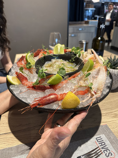 Read moreGran peccato!!! Così voglio iniziare questa recensione. Waves era un cavallo di battaglia, punto di ritrovo per ogni viaggio in zona Gaeta. Questa volta abbiamo deciso per optare per le loro carni. MAGNIFICHE, frollatura perfetta, abbiamo preso un kg e mezzo di costata irlandese. Cottura al sangue, avevamo richiesto. Richiesta esaudita alla perfezione… ma Pietra lavica con sopra la carne cotta alla perfezione… Cosa è successo, la carne è diventeta un bollito.. come distruggere una prelibatezza.. Ma ora arriviamo al punto dolente della serata. Come ben tutti sappiamo Waves ha una cantina di tutto rispetto. Non abbiamo trovato il precedente maitre, molto preparato, accurato e ti coccolava per tutta la serata parlando del vino e della storia che lo circondava, ma un nuovo maitre o direttore di sala. Abbiamo chiesto la prima bottiglia, dopo un po’ di tempo è arrivato scusandosi che non aveva la gestione della cantina e la bottiglia scelta non era presente in cantina. Perfetto scegliamo la seconda bottiglia. Arriva prima la carne e poi lei, bottiglia da aprire, verificare se presenta difetti con un bourgogne di feuillet, bisognava subito cambiare i calici e non richiesto dai commensali. Il tutto servito come in un’osteria senza un minimo di spiegazione sulla bottiglia, sulla cantina, su cosa aspettarsi da quel succo di nettare. tranquilli abbiamo studiato nel mentre la carne continuava a bollire nei suoi succhi. Unica fortuna della serata, il dolce. Magnifico e perfetto in ogni sua consistenza, anguria se non erro. Un grandissimo peccato per...