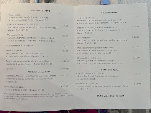 ——————- Modifica dopo risposta del proprietario: Vero, mi sono confuso con l altro ristorante sul prezzo, 170€ li ho spesi a Santa Maria di leuca, da voi ho speso 111€ (domenica sera in data 04/06/23). Comunque parlare di soldi quando si va fuori a cena non si fa, non lo faccio mai, l’ho fatto solo per dimostrare che non ho occupato il tavolo inutilmente. Si,eravamo lontano da tutti, al tavolo 16, la coppia sulla 40ina era il tavolo più vicino al nostro ( comunque lontano da noi ). E rispondo anche alla sua affermazione “sarà una sua sensazione “ e le rispondo con un “NO” è stato proprio un dato di fatto, come gli esempi fatti prima, e c’è ne sarebbero...