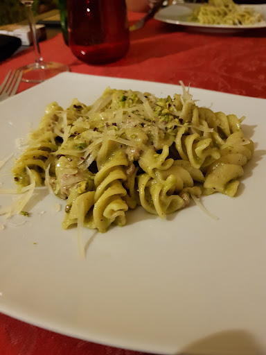 🍝 Due fusilli con crema di pistacchio e pancetta: da un abbinamento tanto importante mi aspetto molto di più. Crema di pistacchio poco saporita, pancetta che non aggiunge ne sapidità ne consistenza al piatto.