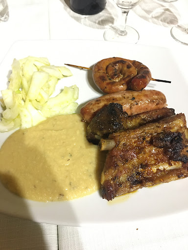 Descrizione Cena Eravamo in due e abbiamo scelto di iniziare con l’antipasto della casa, una selezione varia e abbondante di proposte che univano tradizione e creatività, tutte preparate con ingredienti freschi e genuini. Ogni assaggio era un piccolo viaggio nel gusto, con sapori equilibrati e ben presentati. Abbiamo poi proseguito con una tagliata e un’entrecôte: carne di ottima qualità, tenera e cotta esattamente come richiesto, accompagnata da contorni semplici ma ben eseguiti. A tavola, mezzo litro di vino rosato della casa, servito fresco, dal gusto piacevole e perfetto per accompagnare l’intera cena. Abbiamo concluso con due sorbetti al limone, rinfrescanti e ben serviti, ideali per chiudere il pasto con leggerezza.