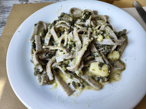 Read moreHo pranzato in questo ristorante domenica 30/09 Nonostante il locale fosse pienissimo ed effettivamente ce ne siamo accorti già al parcheggio , tutto pieno , abbiamo dovuto farci 2 Km a piedi tra salite e tornanti fino a quanto il gentilissimo ragazzo che guida la navetta a 10 min. dall’arrivo viene a prenderci (rifiutiamo il passaggio per spirito sportivo ma abbiamo apprezzato moltissimo). NOTA = è disponibile un efficiente servizio navetta , ma abbiamo preferito camminare anziche aspettare. Una volta arrivati al ristorante di per se c’era molta confusione ma oserei dire SANA E ALLEGRA CONFUSIONE (tipica con bambini che giocano e urlano in mezzo ai tavoli ,camerieri che fanno gli slalom tra bambini e genitori e quest’ultimi che venivano giustamente sgridati dal cameriere di passaggio) insomma tutto quelle che concerne le classiche situazione di sovraccarico di servizio , con i camerieri che urlano il nome dei piatti per capire a chi vanno assegnati per via del vociferare che rimbomba all’interno del locale tanto da far fatica persino a parlarsi tra i commensali. Però ripeto , SANA E ALLEGRA CONFUSIONE , il personale è gentilissimo , rapidissimo , TUTTI sono stati cordiali , simpatici e molto disponibili , BRAVI ! La cucina ha mostrato il meglio di se per quanto mi riguarda. A detta di molti commensali i piatti di pasta e carne così come i dolci e il vino è stato OTTIMO. Io ho mangiato il piatto vegetariano (buonissimo e ben preparato) con un tris di verdure di contorno (buone anche queste) e per dolce la torta vegana pere e cioccolato (DEVASTAMENTE BUONA).