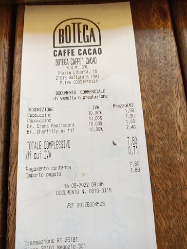 Read moreHo visitato il Botega Caffe Cacao a Gallarate per la colazione e l’esperienza è stata decisamente positiva. Il locale presenta un ambiente accogliente con posti a sedere sia al piano terra che al primo piano, creando un’atmosfera intima e rilassante.
