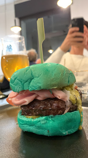 Read moreSono stato in questo locale su suggerimento di un amico e devo dire che ne è valsa la pena. Il posto non è molto grande (conviene prenotare, io non avendolo fatto, ho aspettato circa una decina di minuti per un tavolo) – circa una ventina di tavoli – ma l’atmosfera è giovane, informale e accogliente. Il menù è davvero interessante: offre una buona varietà di burger con carni diverse (manzo, pollo, salsiccia), ma anche opzioni alternative come salmone e una proposta vegan, che risulta essere molto interessante. Il menù comprende una base e diverse opzioni (tra cui la scelta del pane) per rendere ancora più unico il tuo hamburger.