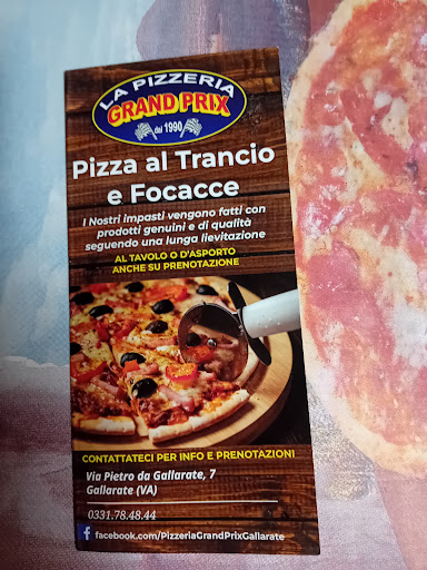 E' una storica pizzeria di Gallarate presente sul territorio dal 1990 ed è un punto di riferimento per la pizza da asporto e non solo. Il nome "Grand Prix" riflette la passione per il motociclismo dei fondatori, uno dei quali ha anche gareggiato nel mondiale velocità. Nel corso degli anni, la gestione è passata alla seconda generazione, mantenendo viva la tradizione e la qualità che hanno reso la pizzeria un punto di riferimento per gli amanti della pizza al trancio nella zona. Il menù include una varietà di pizze al trancio e tonde, focacce e piadine, disponibili sia per l'asporto che per il consumo ai tavoli. Il locale è ampio e pulito e a tema automobilistico. C'è una saletta per il consumo ai tavoli e il bancone per l'asporto. Il personale è molto gentile ed il servizio è molto rapido anche nei momenti più affollati. Le pizze sono estremamente digeribili, gli ingredienti sono di qualità da sempre. I prezzi sono competitivi rispetto alla media e le porzioni sono abbondanti. insomma, se passate da Gallarate, non potete non fermarvi per un Pit Stop alla Pizzeria...