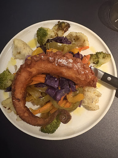 Il menu è ricco e variegato, e nonostante la forte presenza di piatti a base di carne e pesce, sono rimasto colpito dalla cura e dall’attenzione dedicata anche alle proposte vegetariane. Le tapas vegetariane erano un’esplosione di sapori: dagli squisiti peperoni del piquillo ripieni, fino alla tortilla de patatas, tutto perfettamente equilibrato e autentico.