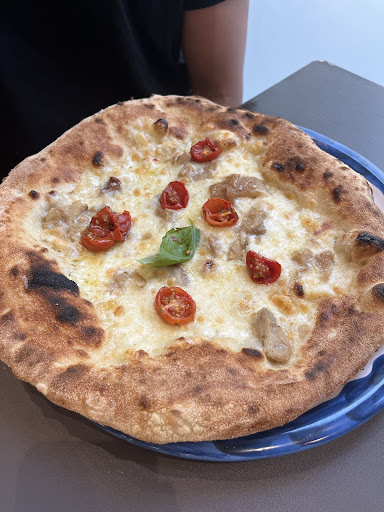 Appena trasferitomi in cittá mi hanno consigliato questa pizzeria e ci sono andato. Locale carino con anche una terrazza all’aperto dal sapore d’estate; La pizza buona, ma impasto un po troppo biscottato (non per eccesso di cottura ma per scarsa idratazione probabilmente) e cornicione dalla struttura poco alveolata. Ho ordinato una pizza chiamata “radicchio” che prevedeva da menù crema di radicchio crema di noci provola miele e noci sbriciolate (13 euro di pizza una delle top menu), ma mi è stata servita una pizza senza crema di radicchio e con pezzi di radicchio crudi al morso ovviamente molto amari che creavano disarmonia con il resto dei sapori delicati della pizza. Cameriere distratto nell’ordinazione e bisognava ripetergli le cose tante volte prima che capisse bene quel che richiedevo e non credo ancora tutt’ora che abbia compreso la mia segnalazione fatta in merito a questa discrepanza tra quel che stava scritto in menù e la pizza servitami al tavolo. Il tutto si è concluso con in regalo una bella ciabattina di pane fatta da loro che in 12 ore è diventata pietra adatta per murature domestiche. La loro cheesecake ai lamponi molto buona, ma quella al triplo cioccolato ha la base troppo inzuppata di liquore che dopo qualche morso inizia a prevalere su tutti gli altri sapori. Fa specie vedere che il prezzo dei loro dolci fatti in casa sia uguale a quello della rinomata pasticceria campana del maestro Sal De Riso. Un peccato non avere l’offerta in menu di frittatine di pasta e crocchè tipici di una tradizionale pizzeria napoletana, ma sostituiti con...