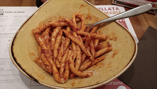 Read moreCi siamo andati con la mia famiglia giovedì a pranzo, penso che la vera cucina casalinga calabrese sia abbastanza lontana da quella proposta dal ristorante, ma questo è il mio parere,riguardo al menù le frittelle discrete anche se quelle di zucca colava l olio, forse non arrivato a temperatura giusta,invece quelle di carne dentro erano crude,l affettato era troppo freddo da frigorifero,e la pancetta in particolare affettata da tempo perché tutta secca e arricciato su se stessa,il primo presonda me devo dire buono ,da buon calabrese il piccante giusto fileia con cipolla e n duja alla calabrese ma con formaggio grattugiato al posto del caciocavallo silano,gli altro primi con le polpette abbondanti ma le polpette molto dure,non abbiamo preso altro essendo non molto soddisfatti e avendo due bambine, non voglio dire nulla sul conto,i prezzi sono ben chiari,e chiudiamo con l aver chiesto una tovaglietta da poter portare via,pagando, e la risposta è stata,assolutamente impossibile le tovagliato non si possono proprio dare,se proprio volete, portatevi via quella che avete mangiato (unta e macchiata)mi dispiace perché con qualche accortezza in più si poteva rendere più...