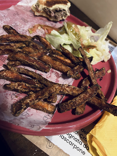 Serata 2: Accesso in due. Si sceglie. Attesa lunga come le fumate bianche. Un antipasto di polpette, bella e buona e un’insalata crispy. Abbiamo dovuto svenare i camerieri che poverini cercavano, come la pentola d’oro, il nostro ordine (un grazie a MariaCristina). Arrivano le polpette. Buone ma sprecatissimi sul bacon che era formato Barbie. Arriva la carne “500g a cottura media” ordinata dall’altra persona con me. Ovviamente non c’entrava nulla con la foto. Massimo 200g a vista, alta come i lego per i modellini e di cottura errata (non era media ma di più). Patate poi di contorno a cubetti che non avevano chissà che spinta. Salsa mancante che a causa dei continui solleciti si sono scordati e hanno solo mandato il sale con l’origano. Dopo altri richiami al cameriere si chiede la salsa che con fare da scettico corre a vedere il menù, non convinto che avessimo letto giusto. Scopre che avevamo ragione. Portano la salsa ma che di BBQ non aveva manco il colore, a quanto pare ketchup. Insalata buona ma nulla di speciale visto che era semplice iceberg. Due straccetti e poi la burratina che buona eh, ma non era sto granché (meglio quella comprata per casa non di supermercato però). Purtroppo cameriera sbadata, che incurante del collega ha tentato di portarsi un bicchierone appresso insieme al resto. Ovviamente tutto caduto in terra rovesciando anche qualcosina sui miei piedi. Dopo le dimenticanze, il tempo e altro, il cibo di qualità pressoché buona non salva il resto. Era meglio in passato. Almeno ho potuto usufruire di una fetta di cheesecake alla Nutella gratis (ma fare un coupon dove uno sceglie il gusto no? Sarebbe stato più carino) che alla fine era buona dai. Qui abbiamo pagato 50,30€