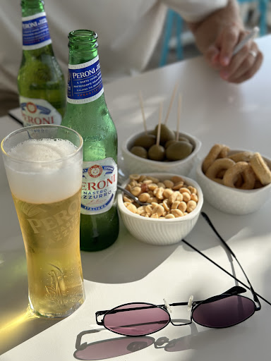 Read moreGreat atmosphere and view, reasonable cocktails, and a selection of pizzas and pasta for dinner or lunch. The seafood pasta was a basic but generous portion loaded with shellfish. Pizza was also pretty basic but generous size (for Italy) and totally hit the spot after watching the sunset, having a few drinks and getting the munchies. I wouldn't come here just for the food but music, view, sunset cocktails, people watch the beach and...