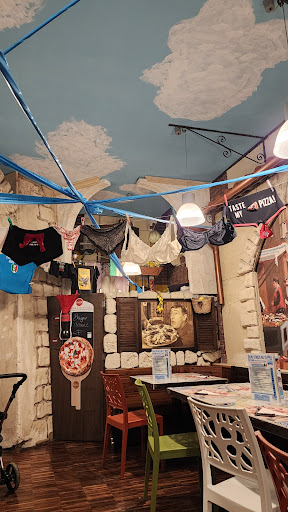 Read moreEnglish menu’s available. Authentic Italian. Great portions. Amazed to see adult underwear on display at ceiling level (?). Memorable appetizers: Parmaginna (amazing), Piazza’s (€8 - 10 each) we enjoyed were: 4 cheese piazza (good), sausage red piazza came with unusual chips on top which were delicious, vesusius tomato piazza. We had a fabulous bottle of house wine which is very good value, served at the perfect temperature. Blonde & Duncan beers on draught were consumed also which tasted v good. We hope to return before the end of our holiday. €115 for 5 people - excellent value, well...