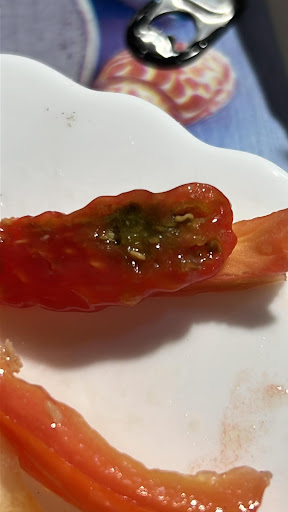 Abbiamo preso una margherita e un’insalata di tonno. La pizza era secca, dura e immangiabile. L’insalata di tonno era fatta coi piedi o meglio, dal nostro tavolino fuori dal locale avevamo la visuale della cucina da una finestra dove si notava ciò che accadeva in cucina. Notiamo che la cuoca nella preparazione dell’insalata afferrava il tonno in scatola stringendolo con le mani e strizzandolo. Insalata già condita da lei con olio e aceto bianco senza possibilità di scelta da parte nostra. All’arrivo dell’insalata dopo aver già iniziato a mangiarla ci accorgiamo della sorpresa nel pomodoro. In allegato la foto. Riferiamo al cameriere quanto trovato e porta indietro l’insalata. Al momento del conto i proprietari ci dicono testuali parole “i pomodori non li facciamo noi, potevate scartarlo, o lo avremmo tolto noi”. Che loro non facciano i pomodori credo sia ovvio ma che preparino e controllino l’idoneità degli alimenti prima di servirli mi pare il minimo. Alla fine l’insalata non l’hanno fatta pagare anche se non lo hanno proposto loro ma abbiamo insistito dato che non...