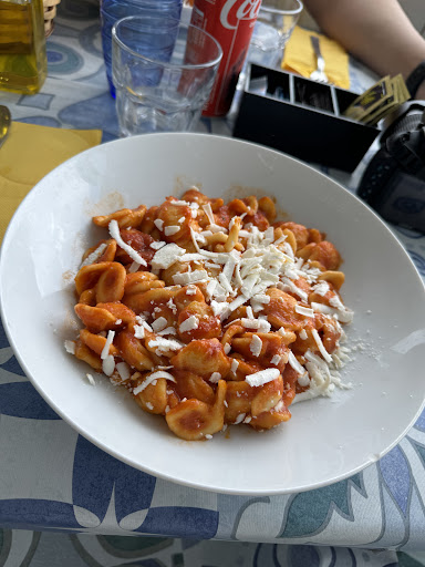 Ieri con il mio fidanzato, nella ricerca di un posto pee cenare. La nostra attenzione viene attirata da questo posto, con una vista sul mare meravigliosa. Decidiamo di fermarci qui. Appena accomodati ci portano il menù ed il mio compagno si sceglie un menù del giorno a 25€ con antipasto, primo e secondo, io scelgo alla carte. Ci portano l antipasto, dopp nemmeno 5 min, io stavo ancora a metà piatto arriva la ragazza con in mano il mio primo(linguine alle vongole), le faccio notare che sto ancora mangiando l'antipasto e il mio compagno anche se, aveva finito, credo sia corretto aspettare che finiscano entrambi, sparecchiare e poi procedere con la pasta. La ragazza ritorna all interno con questo piatto e si scusa. Finisco di mangiare, sprechiamo e voilà che mi riportano le linguine di prima sopra belle fredde e all interno la pasta scotta. Mangio cmq, sono in ferie,e non sono in vena di polemica. Procediamo con il secondo che aveva incluso il mio fidanzato(io nn prendo più nulla), per lui arriva filetto di orata con l insalata non condita, si rendono conto dopo qualche minuto che qui ci vogliono l olio, aceto, sale x condire insalata. Ma ok, andiamo per finire...chiediamo il conto e il cameriere prima di andarsene ci avvisa che il pos non funziona (per me una cosa del genere si deve dire all inizio, perché non sono obbligata di avete il contante addosso)qui mi sarei potuta rifiutare di pagare o chiamare la finanza. Ma ok, il mio compagno ha il contante e andiamo vedere il conto. Ciliegina sulla torta?nel conto ci troviamo segnate 3 acque, invece che 1, mezzo litro di vino invece, era un quarto già compreso nel menu del mio compagno, quindi per un totale di circa una 10€ in più. Per non parlare dello scontrino non fiscale . Con questo, in zona restiamo altri 3 giorni e la sera cambieremo assolutamente il posto e assolutamente il panorama che ha il ristorante non ripaga né il cibo né servizio. E difficile farmi perdere la pazienza, ma ieri si sono proprio impaginati, sono stati fortunati che sono in vacanza altrimenti si trovavano la finanza e mi pagavano loro a me i danni di una...
