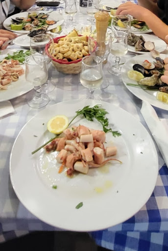 Read moreSono stata in questa trattoria con il mio ragazzo la prima sera della nostra vacanza a Gallipoli: TUTTO VERAMENTE PESSIMO. Siamo andati il 30 Luglio Sera, ci siamo seduti alle 21:45 e abbiamo ordinato due primi (linguine ai frutti di mare e trofie gamberetti zucchine e menta) e un litro di vino della casa. I primi sono arrivati alle 11:30 dopo innumerevoli richiami. I camerieri si discolpavano a vicenda, nessuno sapeva niente e intanto ci siamo saziati con i taralli e il vino. Finalmente arrivano i primi ma... le linguine ai frutti di mare erano crude (immangiabili) e le trofie erano insapore. Gamberetti duri e frutti di mare congelati (nonostante la trattoria si trovi al mercato del pesce, dove i pescivendoli cucinano pesce fresco davanti agli occhi di tutti). Conto Totale 31 euro (la maleducata signora alla cassa, alle nostre lamentele ha risposto: "NON HO CUCINATO IO!" e il conto è passato dai 31 ai....30 euro!!!!!! ). Lo sconsiglio...