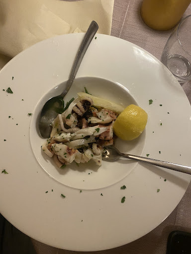 Lots of seafood choices. Good portion sizes. Memorable appetizers were Mussels (fab), Barrata with basil cream (amazing). Mains: Linguini with mussels & clams (delicious), Orecchiette with basil in a tomato sauce (divine). House white wine a little sharp for our tastebuds although improved with the addition of sparkling water. We were a party of five and had to sit indoors which was v warm. Unfortunately the air conditioning was not working. Otherwise, it was a place we would like to return to before the end of...