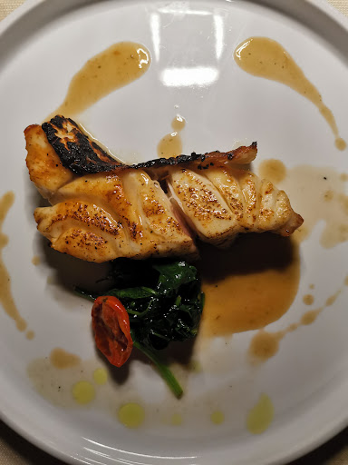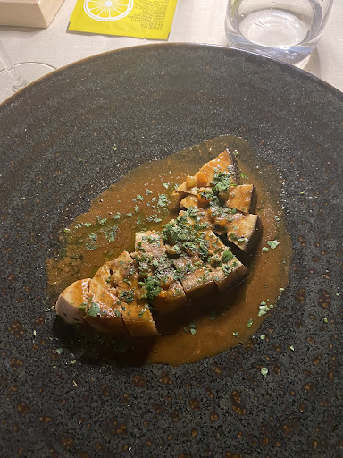 Read moreCosa posso raccontarvi di questa esperienza quasi unica? Un ambiente calmo, raccolto e coccolato da migliaia di grilli che cantano per te, un personale che ama raccontare con passione i piatti che scoprirete tra non molto, grissini super friabili e...peccato son già finiti (ne mangerei un kilo!!!) persino l'acqua in questo bicchiere così simpatico sembra essere diventata qualcosa di mai assaggiato prima.... ebbene: benvenuti in questo tempio di degustazioni che ricorderete per molti anni a venire! Piatti di pesce eccellenti, ad ogni boccone sogni cose bellissime, poi sorseggi il vermentino della casa Cantina Coppola 1489, anch'esso servito in modo orgoglioso dal personale: la temperatura del vino era semplicemente perfetta! Gli scampi erano adagiati ad uno ad uno sul piatto con maestrìa: avete mai visto degli scampi fare yoga nel vostro piatto? Eccoli! Quì fanno yoga! Sublime anche il gelato mandorle e fichi accompagnato dal Passito Tafuri prodotto anch'esso dalla loro cantina: peccato non potersi elegantemente ubriacare per non fare figure di fronte a tutti, ma lo avrei fatto volentieri, seppur io sia quasi astemia! Ne abbiamo acquistata anche una bottiglia da portare a casa. Felice anche di aver fatto conoscenza dello Chef, Franco Tornese, al quale abbiamo espresso i nostri migliori complimenti. A questo punto non posso fare altro che dirvi che se passate da queste parti, è una esperienza da non mancare per nessun motivo. Se invece non passate da queste parti, andateci lo stesso! Uscirete da questo tempio culinario diversi, appagati, ma...