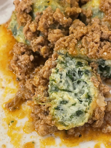 We started with grilled pecorino, which had an incredible caramelized crust, complimented beautifully by the aged balsamic vinegar on the plate. Then we had duck speck - a smoked deli meat - served with red cabbage, pear, pine nuts and cheese. Really lovely flavour combination. The best was the gnudi - a ricotta cheese dumpling with spinach. It’s a wonderful dish we haven’t seen on any other menu in a whole month of travelling across Italy. It’s wonderfully soft melted ricotta, and they served it in a pork ragu from a local heritage breed of pig. This dish is a MUST try.