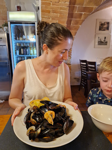 If this existed in Australia, you’d compete to get a booking and prices would be through the roof, but it was very affordable and the Spaghetti carbonara di mare was brimming with mussels, clams, prawns, squid and scampi. I’ve never seen such a generous serve. The grilled octopus on vegetables (Polpo grigliata con verdure) was so tender and delicious. Our favourite pizza was the blue cheese with pear. We will have to come...