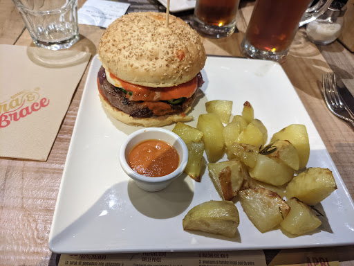 Sono stato presso questo locale con un collega di lavoro, un giovedì sera di fine maggio. Locale pieno forse al 50%. Arrivati alle 20:20, siamo stati fatti accomodare al tavolo. Un bel locale, con una buona presentazione ed un bell'interno. Prima impressione, aimè, è arrivata dal menù, stampato probabilmente dalla peggior tipografia della zona con una puzza di petrolio mai vista. Ma tralasciamo i dettagli. Prima di vedere un cameriere per ordinazioni e bibite, nonostante svariati nostri cenni, passano 20 (VENTI) minuti. Ordiniamo alle 20:40 un hamburger toscano ed una tagliata di pollo. Le birre ci vengono portate subito, i piatti dopo un'altra ventina di minuti, ma ciliegina sulla torta neanche insieme. Prima la tagliata (precotta? secca e con poco sapore) e dopo 5 minuti buoni l'hamburger. In questo caso carne onesta e sapore abbastanza buono. Patate arroste deludenti, visibilmente avariate con macchie scure ben visibili. Onestamente, per piatti pagati 13-15€, mi sarei aspettato molta più qualità. Birre a prezzi ufo, 6-8€ per una birra media alla spina sono troppi. Ciliegina sulla torta, mentre veniamo seguiti da uno dei camerieri per pagare in cassa, la collega gli urla a tutto volume, con noi in mezzo, che non riesce a gestire le commesse e le bibite richiamandolo a tutti gli effetti al "servizio" quanto prima. In totale per due piatti e due birre medie siamo usciti con un totale di 46€.