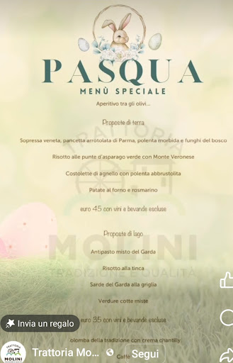 Read moreBene, cominciamo dell esterno.....definisco con una parola: trasandato. Arriviamo e veniamo accolti da una decina di gatti...... Entriamo e ci invitano a sederci ad un tavolo: andate e sedetevi la in fondo ( loro lo hanno detto in dialetto). Veniamo accolti da una zaffata di liscio di gatto.......🙄 Sposto la sedia e.....salta via un micio che dormicchiava..... Bene, questo è l'inizio. Poi, le cose migliorano, col menù scandito dalla cameriera e non letto ( non c'era il menu cartaceo). Piatto tipico è il risotto con la tinca, segue una trota e il baccalà......decidiamo x il risotto x due e una trota e un baccalà. Contorni misti, acqua e vino. Risotto: abbondante, al dente e delicato.....buono! Arrivano i secondi Trota ottima e baccalà con polenta buonissimo ed abbondante. Nel frattempo arriva un'altra coppia e ci saluta con un " buonasera e buon appetito"....(ambiente famigliare anche x i clienti). Tutto molto buono. Conto.....62 euro........forse un po' troppo, visto il tipo di ambiente, ma non così esagerato. Io ci sono tornato dopo 40 anni circa.....sempre uguale! Da provare se non vi danno fastidio i gatti. D'estate, in piena stagione meglio andare presto, si rischia di dover...