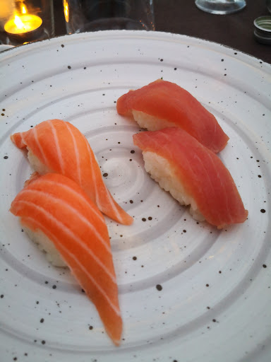 Recensione per punti. Punti positivi: Bella location, bella atmosfera, ottima presentazione dei piatti, disponibilità a cambiare un piatto sbagliato. Se cerchi un posto da primo appuntamento qua vai bene. Punti negativi: Location difficile da trovare per chi non è della zona, il locale si sposta per estivo e invernale, nella mia esperienza dell'estivo sono rimasto confuso tra il cartello volante fuori e le scritte sul vetro dell'ingresso. Norme covid non pienamente rispettate: no controllo temperatura, nessun richiamo a chi non indossa la mascherina all'aperto ( ovviamente non mi riferisco a chi mangia o fuma). Servizio: se non si è pronti ad ordinare, il cameriere non deve insistere e restare li a fissare, la cosa diventa sgradevole, sono stato costretto a prendere cose a caso per la fretta subita dal momento che alla richiesta di ripassare tra qualche minuto la risposta è stata " lo faccio per voi " ( era chiaro che avesse fretta). Menù: Poche immagini. Poca scelta per via delle troppe cose inserite nella lista " special " e quindi ordinabili solo 1 per persona. Non inseriti chiaramente gli allergeni per pietanza, contaminazioni evidenti nei piatti ( negli edamame erano presenti resti di vario tipo) e latticini in pietanze senza ( da ingredienti menù), una persona allergica potrebbe star male. Qualità: Altalenante, ho mangiato dei gyoza, dei nighiri salmone/tono e gunkan al tartufo davvero squisiti, ma, il salmone nel sashimi non era di buona qualità ( le fette erano sfaldate e avevano un forte gusto di pesce non fresco) idem per gli uramaki semplici. Prezzo: 26€ a persona più 2€ di coperto a persona con acqua a 2,50€... ECCESSIVO... Non fanno conti separati a prescindere dal metodo...