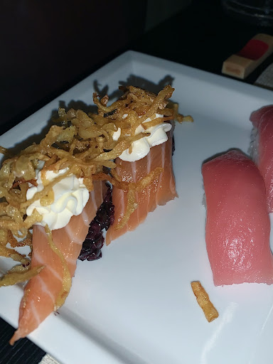 Read moreNé top né flop. Location molto bella, sia interna che esterna (attrezzata con zanzariere e ventilatori). Il cibo dipende dalle portate. Io ho preso 5 piatti: pollo teriyaki: salsa molto buona, pollo un po' meno, molti bocconi con del grasso tacos ebiten: davvero molto buono e tacos croccante tartare tartufo sake: personalmente preferisco la tartare tagliata più fine qui invece i pezzi erano tagliati particolarmente grossi e il sapore di pesce era molto forte, la salsa al tartufo fortunatamente lo copriva ma senza quest'ultima avrei faticato a mangiarlo nigiri aburi sake: normale gunkan pata balls: non male ma il gusto sembrava più quello di una patate normale, invece di quella dolce e i pezzetti non erano croccanti Per il dolce avevo scelto il Nutella Roll , pubblicizzato anche nelle storie di WhatsApp in giornata, ma mi è stato comunicato dalla cameriera che era finito (?) pensavo lo facessero al momento visto che non è altro che un uramaki dolce con crepes al cocco e Nutella... Ma tant'è... Mi sono state proposte come alternative i classici dolci da ristorante. Ho scelto la Sacher, buona però era praticamente una mousse al cioccolato con pezzi di albicocca. Prezzo: alla carta oppure all you can eat a €26+€2 di coperto a persona, l'acqua costa €2,50. A differenza di altri ristoranti in cui si ordina tutto subito qui si possono ordinare 2 piatti freddi + 1 caldo alla volta. Gli uramaki, i temaki e gli yakiudon sono molto abbondanti, ok al non spreco e al gestire meglio le comande ma ciò mi dà anche l'impressione di cercare di far riempire il cliente per non fargli ordinare molte cose. Tirando le somme: sushi nella norma, non entusiasmante come avevo letto in...