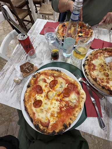Ottime pizze e anche ottime possibilità di scelte di pizza e non solo. Per quanto gentile e accogliente lo staff trovo mancanza di coerenza nell’igiene poiché per mia personale esperienza trovo pessimo indossare guanti neri in quello che presumo sia lattice su una sola mano se poi anziché usare la stessa si usa l’altra per maneggiare il cibo e ancor peggio usare la mano con il guanto per maneggiare resti e soldi per poi di nuovo utilizzarlo sul cibo. Ciò che più mi ha indispettito è stato l’arrivo di una famiglia che penso fossero parenti del proprietario o addirittura i proprietari che avendo una cane si sono fatti portare, giustamente, una ciotola di acqua rigorosamente servita con la mano munita di guanto e sempre con la stessa portata via dopo che il cane aveva finito di bere; e per concludere in bellezza i cuochi hanno pensato bene di fare due carezze al cane gusto prima di preparare le pizze per la tavolata che avevo a fianco. L’ambiente è mediocre ma comunque accogliente trovo personalmente bella, anche se in questo caso rischiosa, la parte di preparazione pizze a vista e trovo altrettanto bello l’ingresso è tutta la parte del bancone del bar. Consiglio inoltre essendo una pizzeria dove le persone tendono a mangiare la pizza senza posate di utilizzare un sapone neutro anziché saponi profumati poiché stonano un po’ e mentre si mangia e si porta il cibo alla bocca si sente un forte odore di...